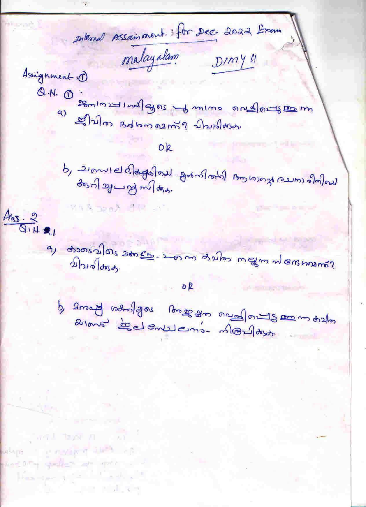 Language MALAYALAM ASSIGNMENT SEMESTER I